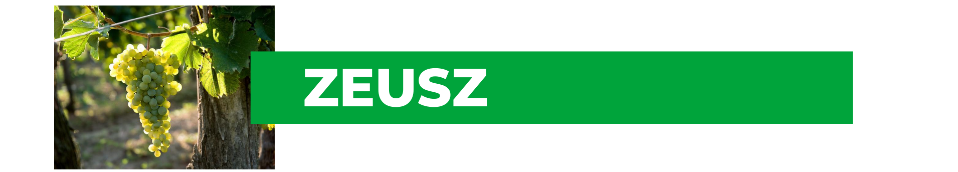 Király Ferenc fajtakeresztezéses nemesítő munkája eredményeként jött létre az öt „zés” szőlőfajta, vagyis a Zeus, a Zenit, a Zéta, a Zefír és a Zengő. A Zeus névre hallgató szőlőfajta Ezerjóból és Bouvier-ből létrejött hibrid. 1951-ben, Pécsett történő nemesítése után állami elismerésére csak 1994-ben került sor. Elsősorban Badacsonyban és környékén találkozhatunk a fajtával, késői szüretből származó, rendkívüli minőséget képviselő, zamatos és élénk savú borok formájában. Késői érésű (október közepe-vége), bőtermő, hajlamos a rothadásra. Fekvés és talaj iránt kimondottan igényes, szárazságtűrő, viszonylag fagyérzékeny, zöldmunka igénye közepes. Tőkéje középerős növekedésű, levele szív alakú, középnagy, kiterített, fűzöld. Fürtje vállas, tömött, rövid, széles, középnagy. Bogyója kicsi, zöld, gömbölyű, sokmagvú, alig hamvas, húsa puha, leves, olvadó.